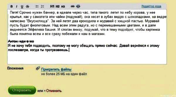 А это замечательное письмо обнаружено на просторах интернета. Дословно такое у нас не повторялось, но порой пообщаешься с некоторыми клиентами и ощущения получаешь подобные.